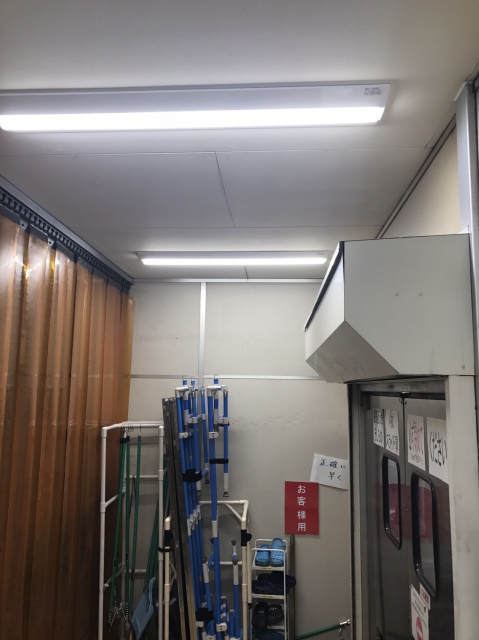 現状の照明器具をLED照明器具に交換して省エネ効果電気使用量40%削減、照度(明るさの見え方の目安)が1.8倍上がりました。非常に明るくなりました。