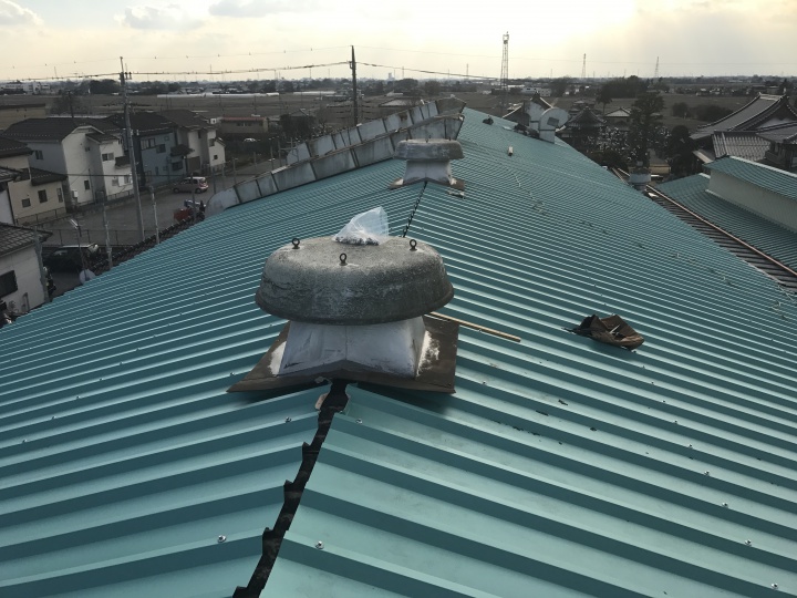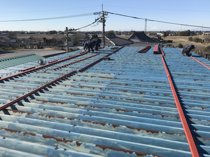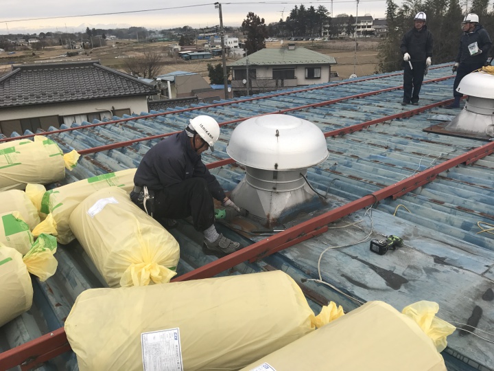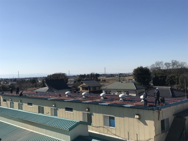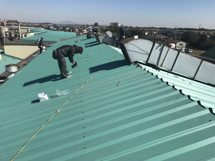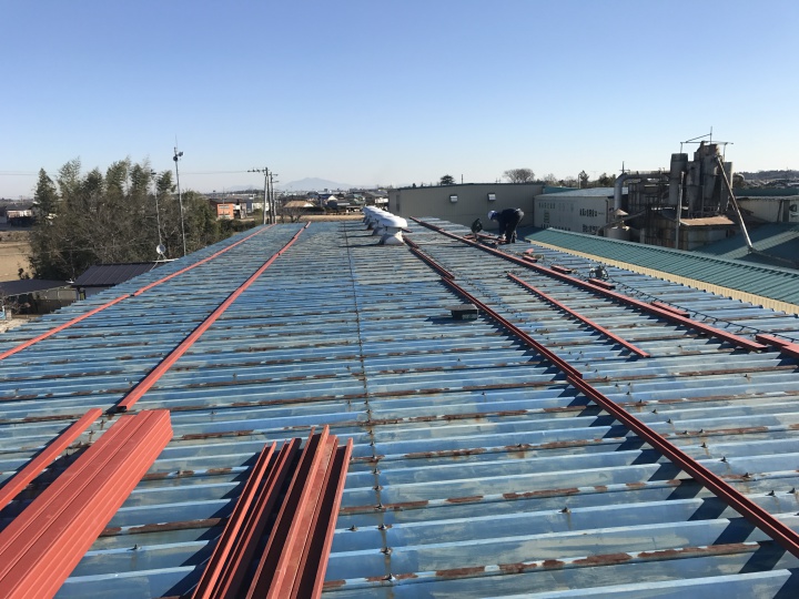 工場屋根施工中